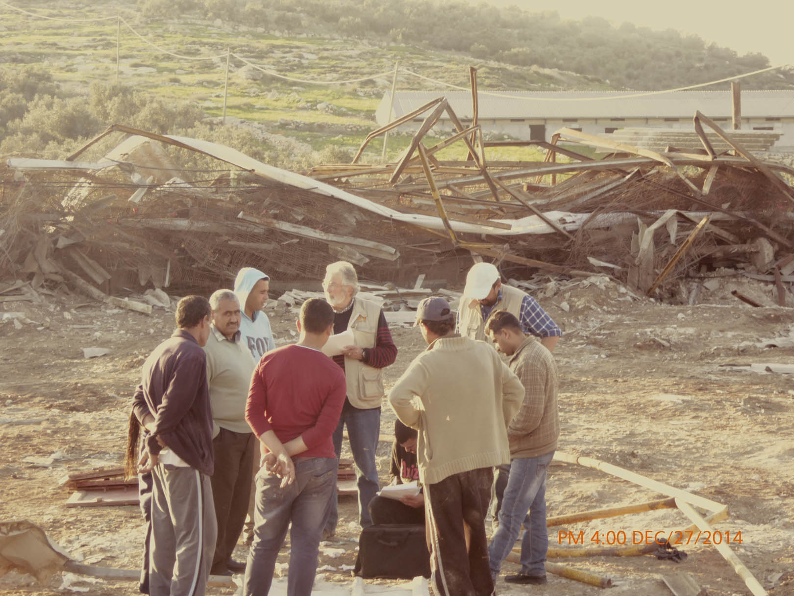 Here we go again. Friday morning started with making an incident report regarding a barley field that had been poisoned. The field belongs to a farmer from Susiya. Today it was to report on demolitions in towns not in our zone but Nassar thought we should go anyway since the EAPPI team from Hebron was not covering it either. The area though has not had too many problems in the past so the demolitions were surprising. The one was a cow barn and factory where cheese was made. The other demolition was a chicken barn. And the third was three sheep shelters. These demolitions were in towns rather than the small bedouin villages that we usually cover here in the South Hebron Hills. These places were also in Area C.
