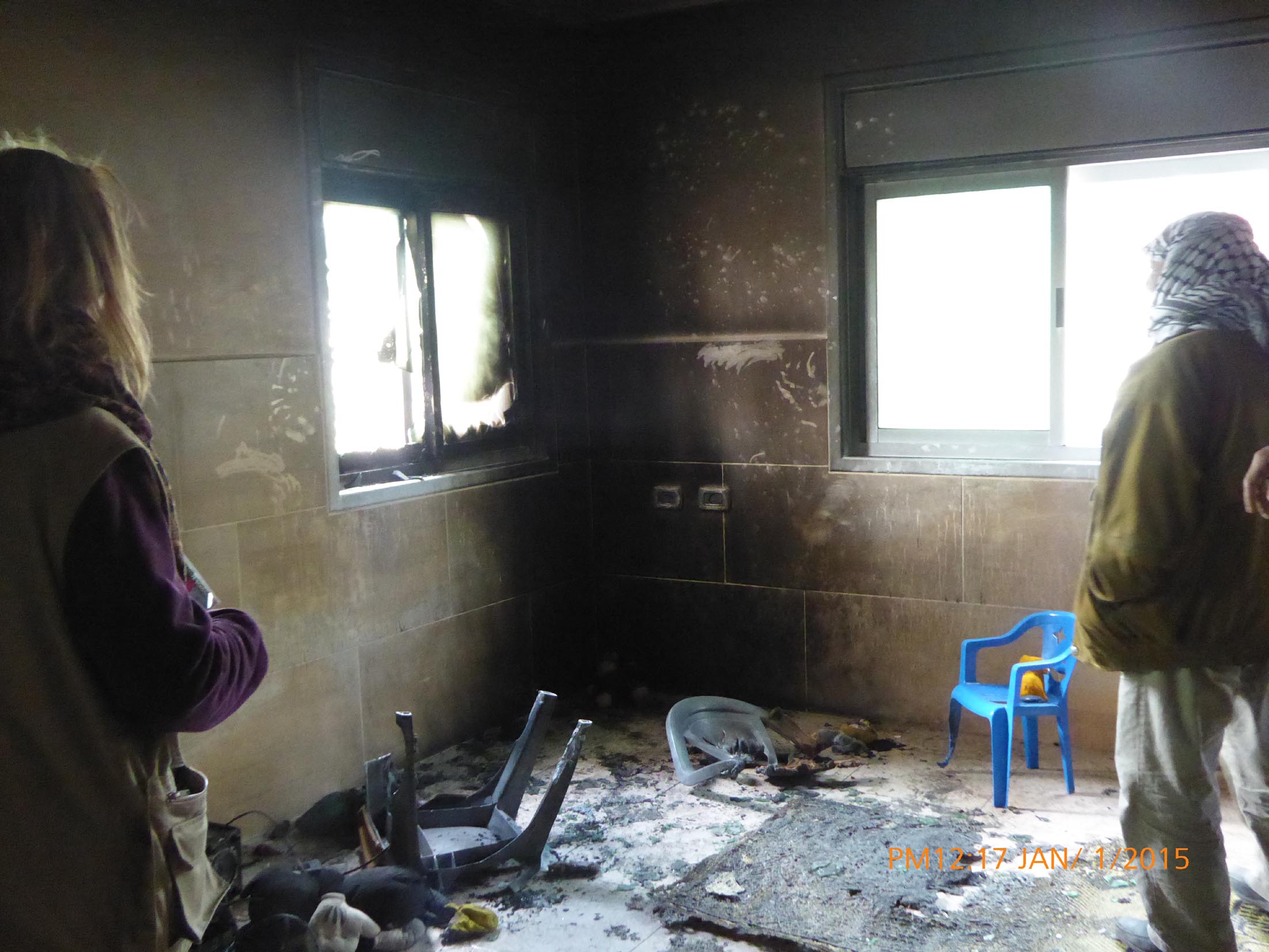 We had planned to do an incident report about a home that was burned. A molotov cocktail was thrown through a living room window of a Palestinian’s home. Luckily, the people were in bed and not injured- it was around 3 a.m. They woke to the fire in the other room and worked to extinguish it.