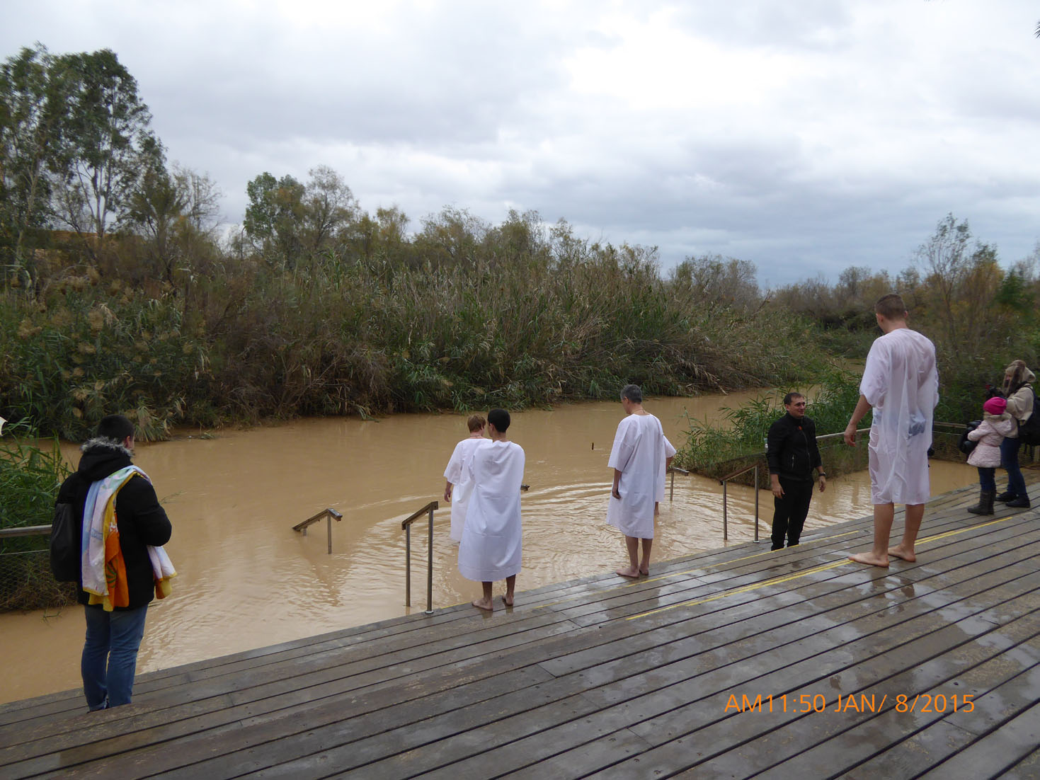 I did not go up the Mount but Mahmoud, the taxi driver, took me to the Jordan River at the site where Jesus is said to have been baptised. There were Israeli soldiers on the one side and a Jordanian soldier on the other. I had my picture taken with the soldiers. They then asked what EAPPI is since I was wearing my vest. I informed them of the type of work we do in the West Bank. I also took pictures of some people who went into the river.