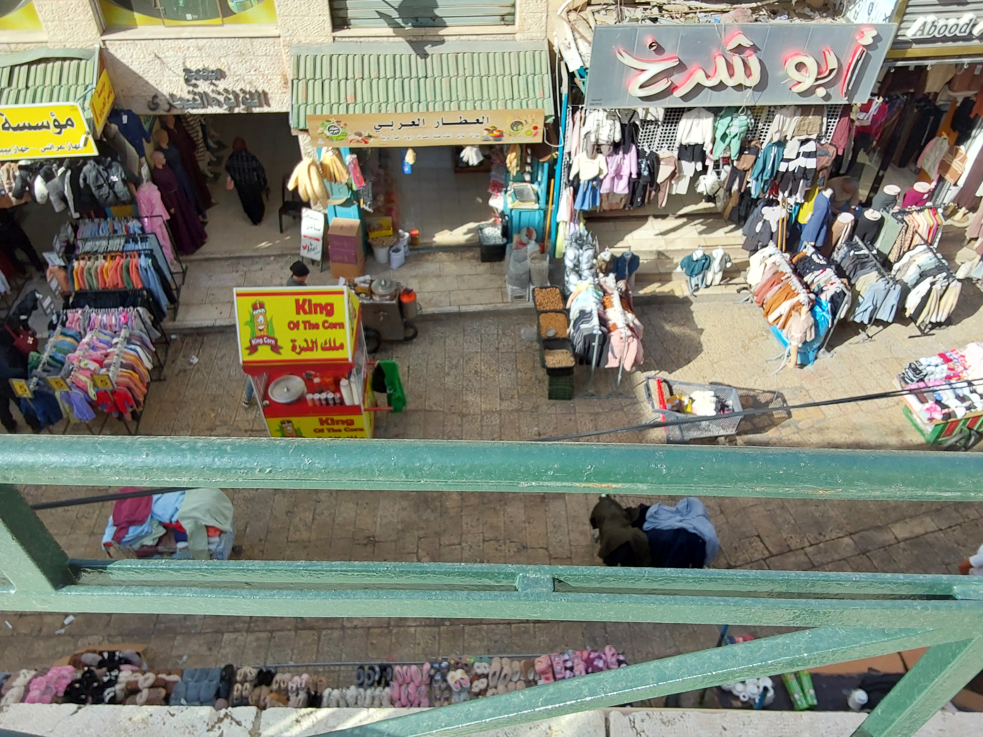 This was taken in the old city of Hebron (Souq). Some shops were now sealed by the Israelis and some may have been by owners. Suhuda street, which was the commercial centre had all the doors sealed shut so people had to go out of their homes a back way and the street is closed to Palestinians and still deserted. See more https://greenolivetours.com/the-story-of-shuhada-street/